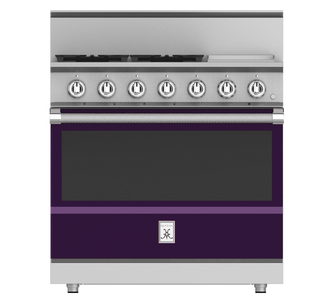 The 36” all gas range delivers searing culinary power with a sealed burner system delivering exceptional temperature control for culinary power up to 23,000 BTUs and as low as 500 BTUs. The 12” commercial-grade stainless steel gas griddle makes breakfast a cinch with superior heating and a thermostat for precise temperature control. The high-performance oven features exclusive PureVection™ technology, which electronically controls multiple heating convection systems, to optimize baking, broiling, roasting and convection baking.Read More